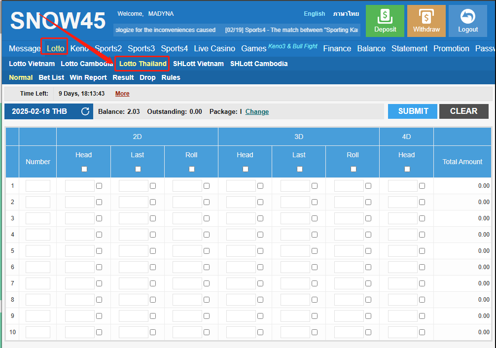 *ឆ្នោតថៃ អាចលេងបាន 2លេខ/ 3លេខ/ 4លេខ /ចាក់ក្បាល/ចាក់កន្ទុយ/ ចាក់ឡូ